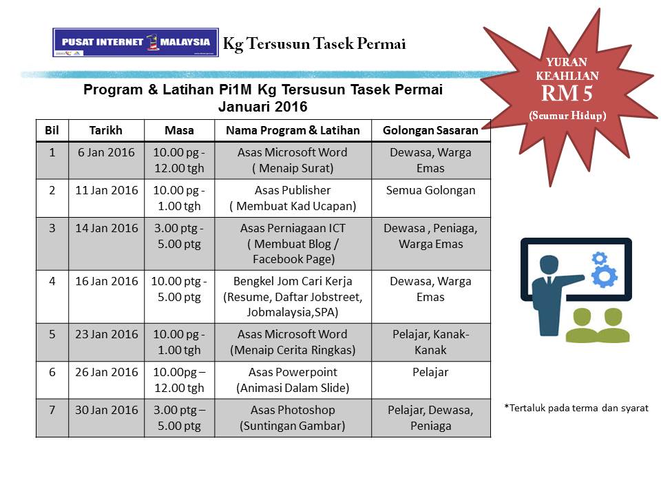 Jadual Kelas Bulan Januari 2016