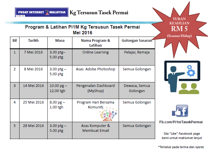 Jadual Kelas Bulan Mei 2016