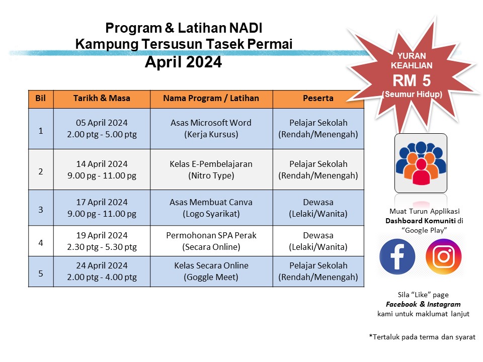 Jadual Kelas Bulan April 2024