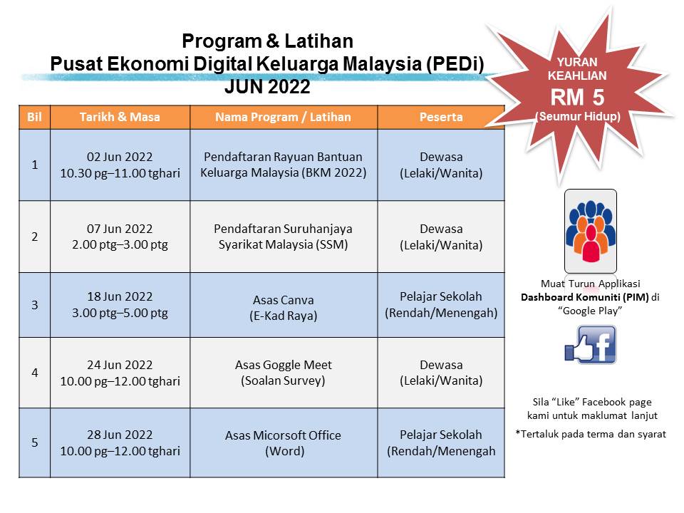 Jadual Kelas Bulan Jun 2022