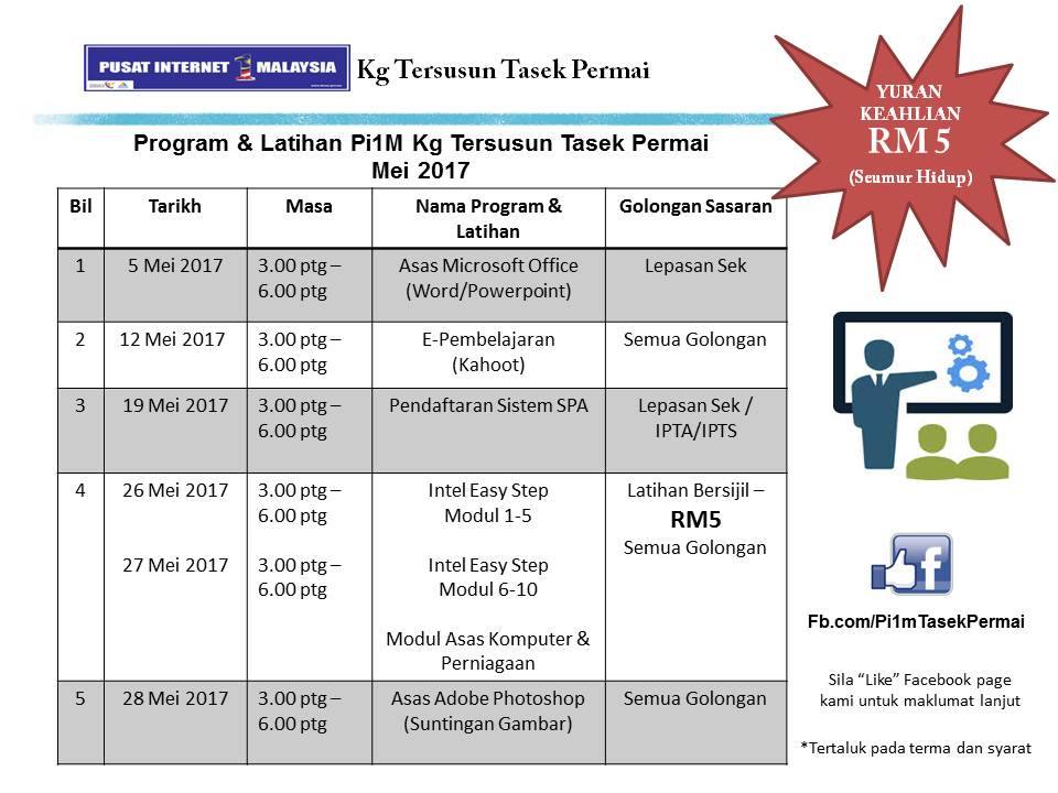 Jadual Kelas Bulan Mei 2017