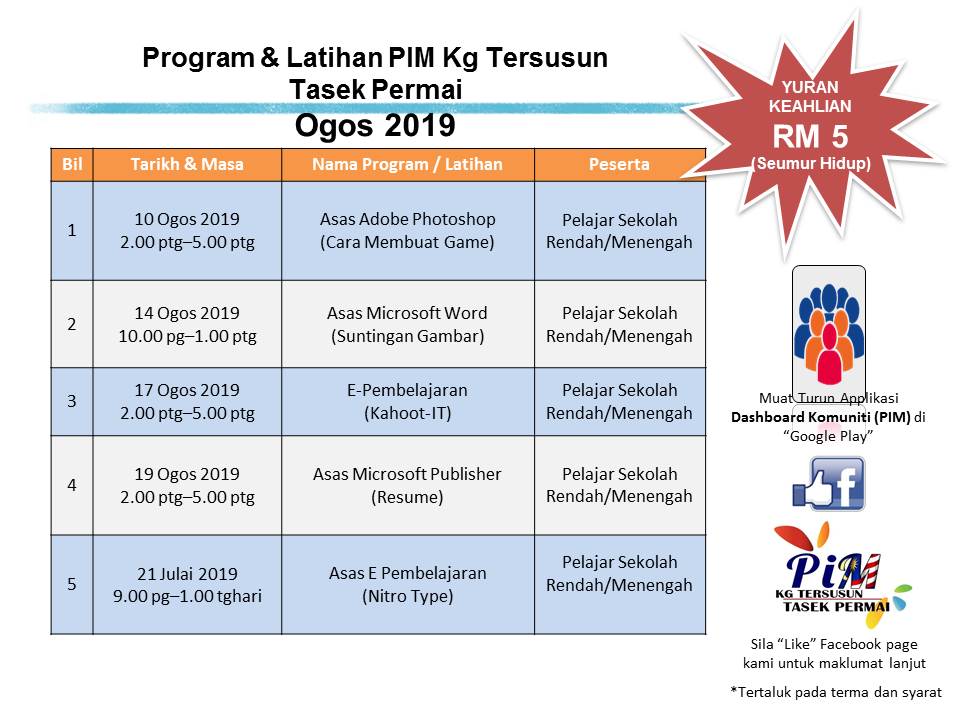 Jadual Kelas Bulan Ogos 2019