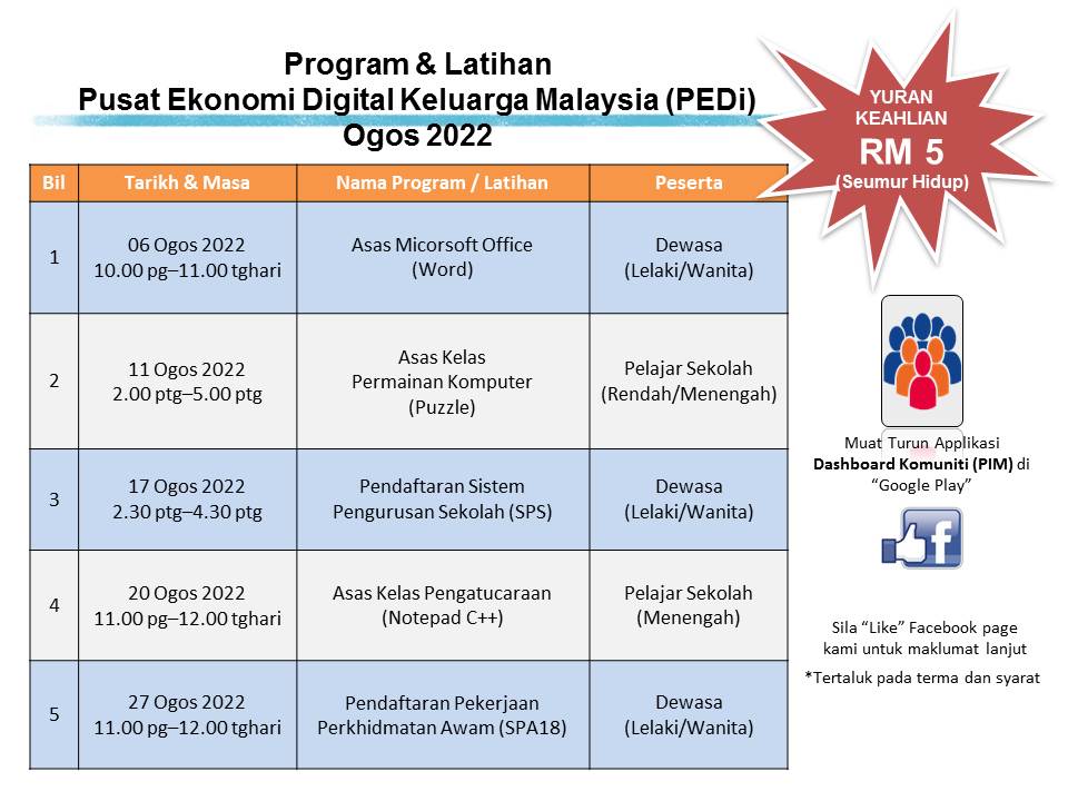 Jadual Kelas Bulan Ogos 2022