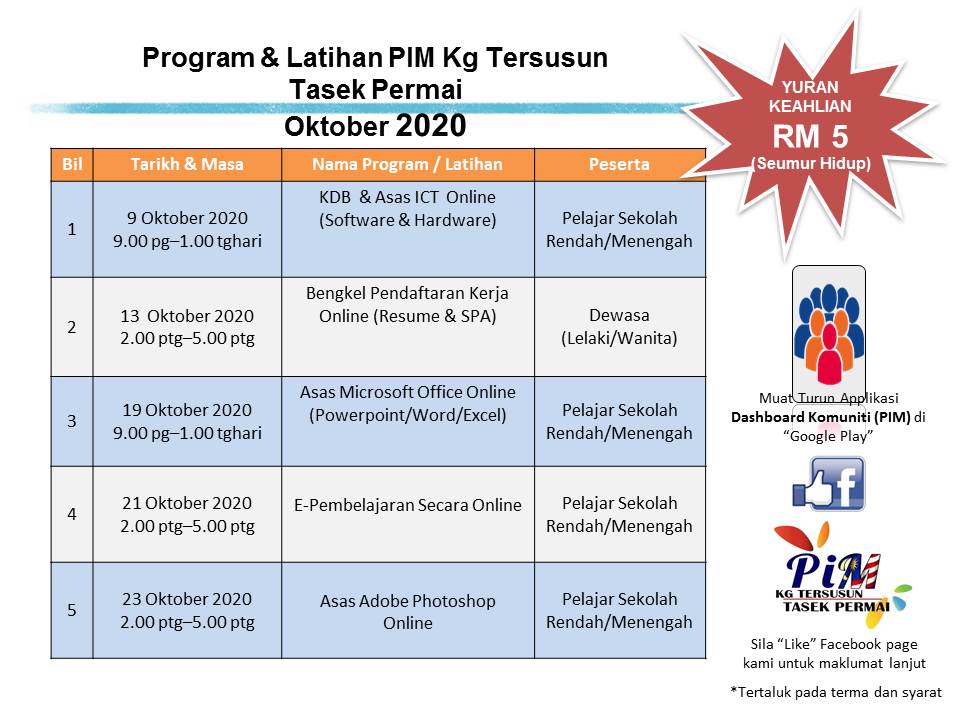 Jadual Kelas Bulan Oktober 2020