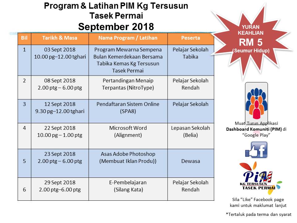 Jadual Kelas Bulan September 2018
